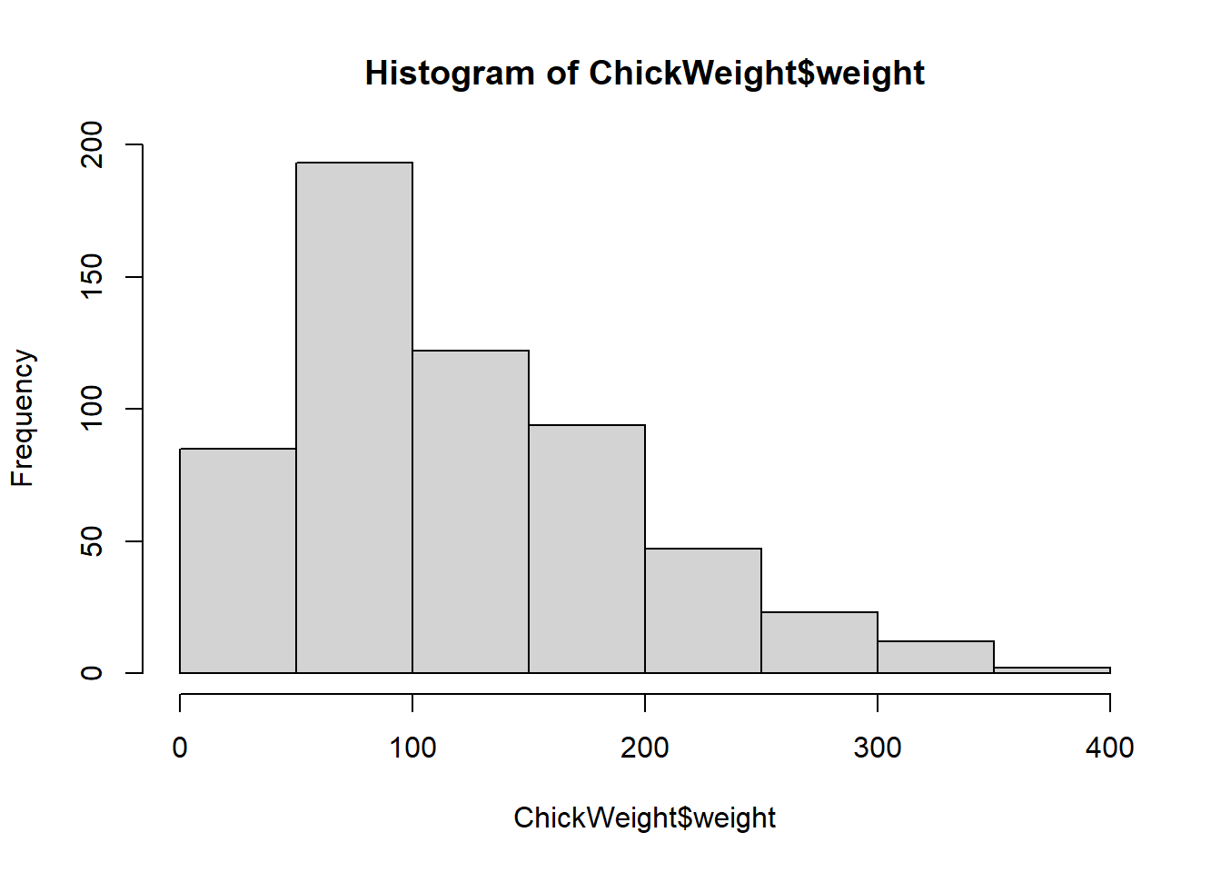 hist(ChickWeight$weight) #buat perbandingan
