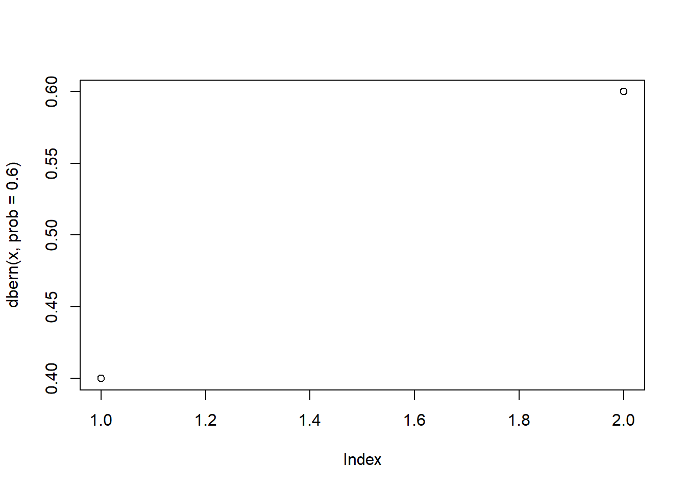 plot(dbern(x, prob = 0.6))