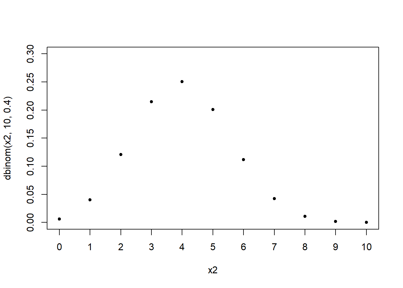 dbinom(x2,10,0.4),