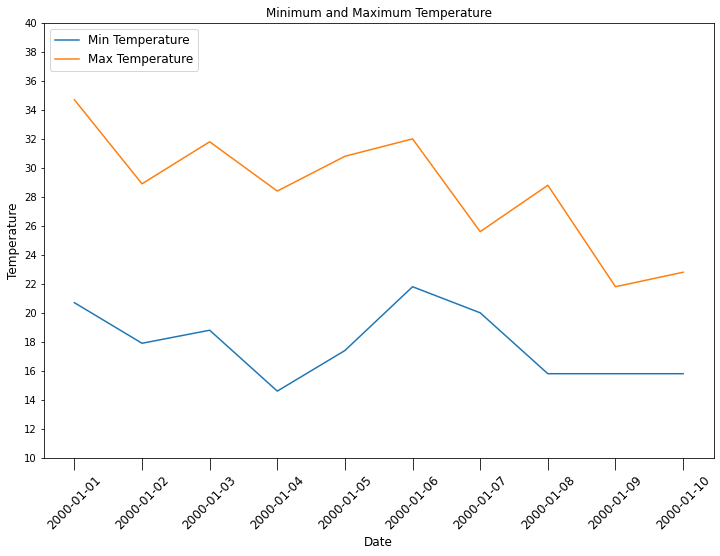 axes.set_title("Minimum and Maximum Temperature",fontsize=12)