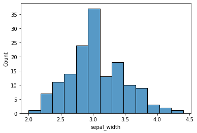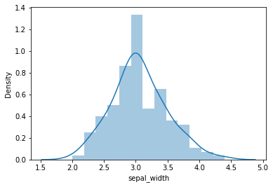 sns.distplot(iris['sepal_width'])F:\kim\anaconda3\lib\site-packages\seaborn\distributions.py:2557: FutureWarning: `distplot` is a deprecated function and will be removed in a future version. Please adapt your code to use either `displot` (a figure-level function with similar flexibility) or `histplot` (an axes-level function for histograms).