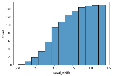 sns.histplot(iris['sepal_width'],cumulative=True)