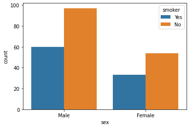 sns.countplot(x='sex',data=tips,hue='smoker')