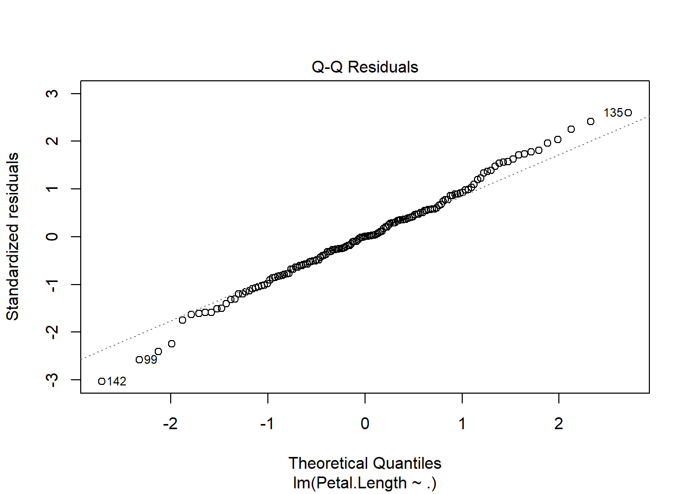 data('iris')model = lm(Petal.Length~., data=iris)