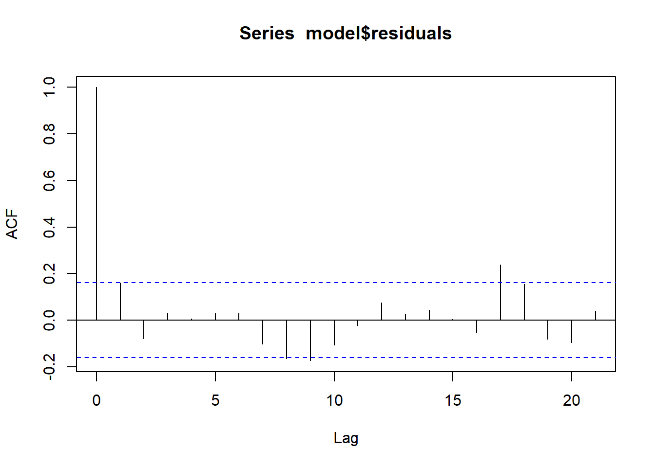 acf(model$residuals, type='correlation')