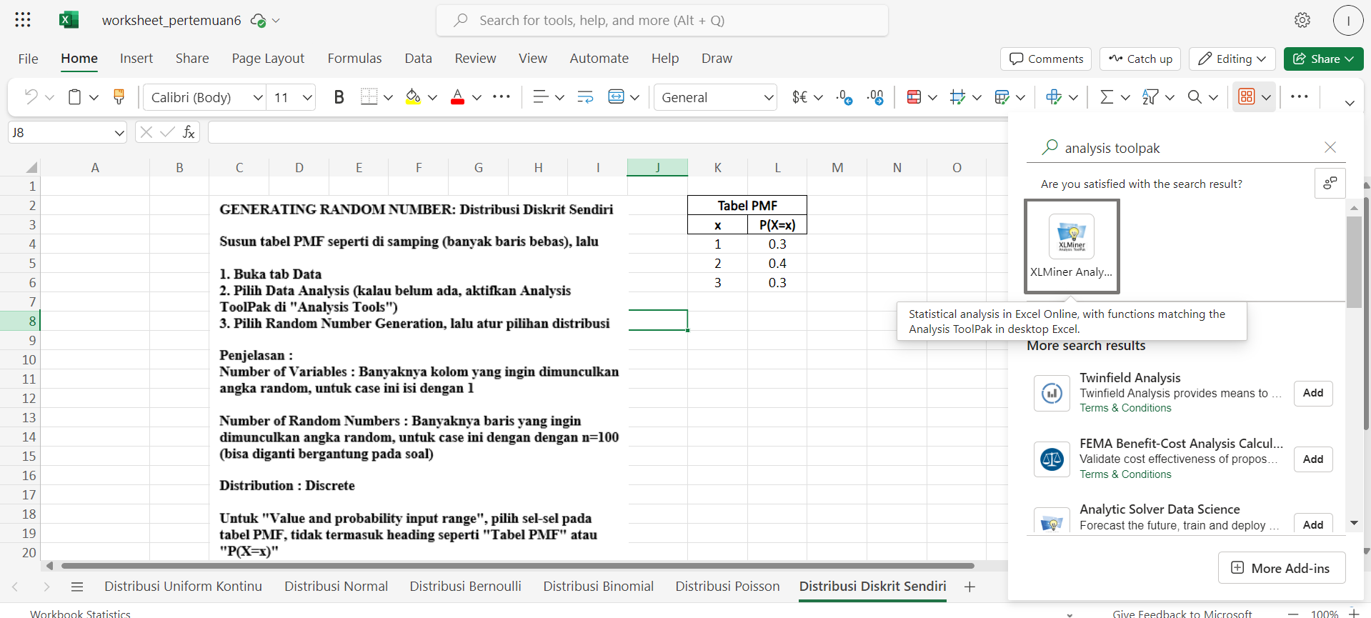 Selanjutnya, kalian bisa ketik “XLMiner Analysis Toolpak” pada search bar