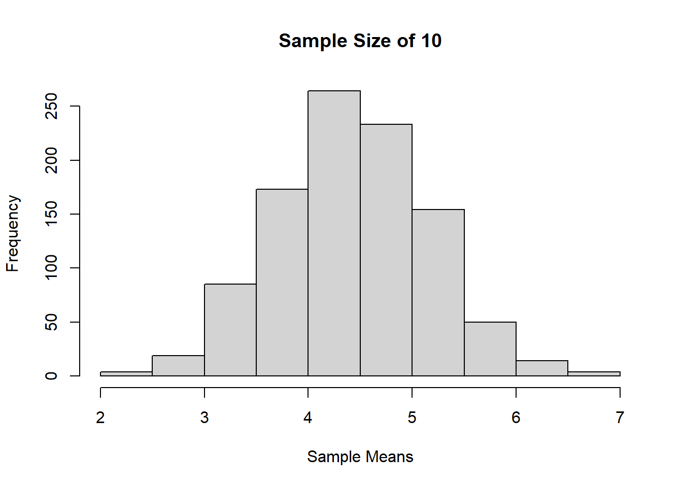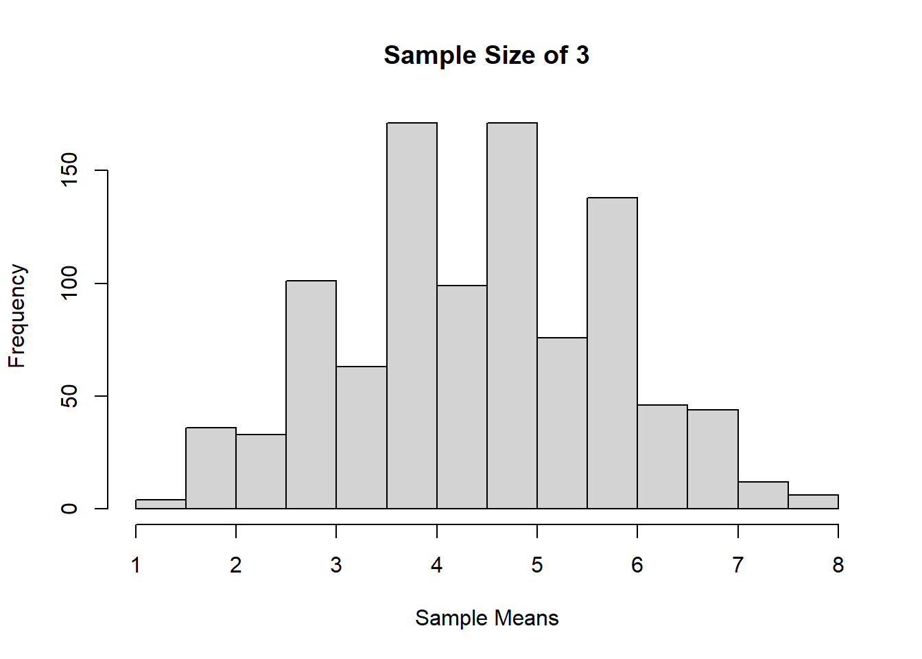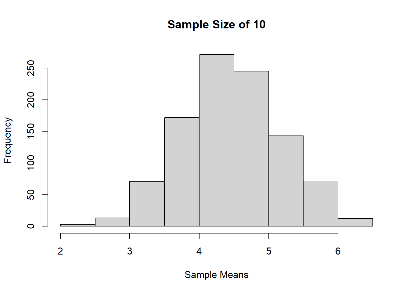 Jika dilihat berdasarkan histogram dari ketiga sampling tadi, bisa terlihat bahwa semakin besar ukuran sampelnya, maka distribusi sample mean akan semakin mendekati distribusi normal