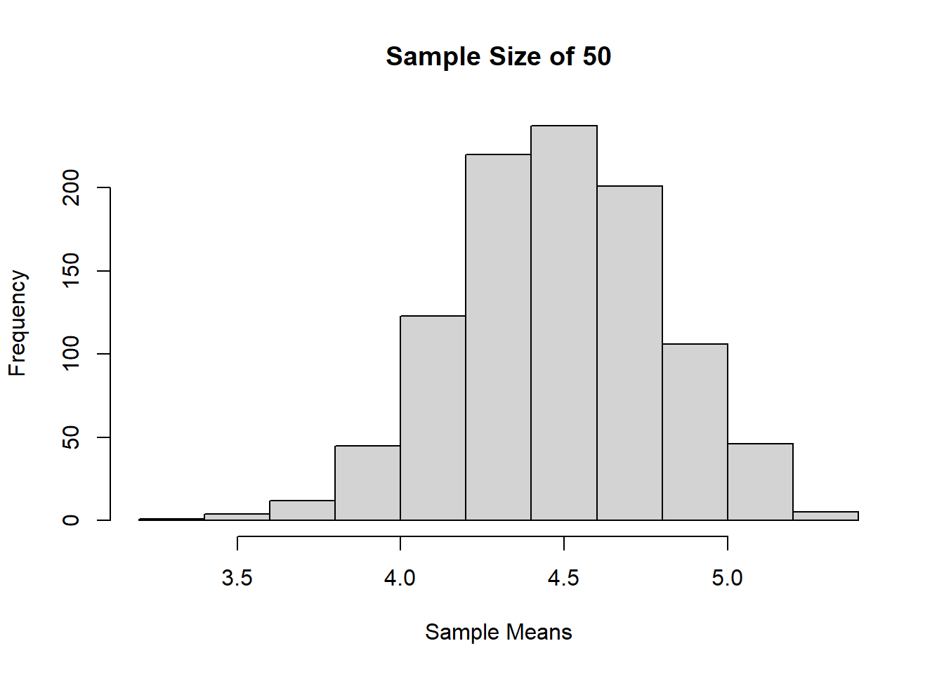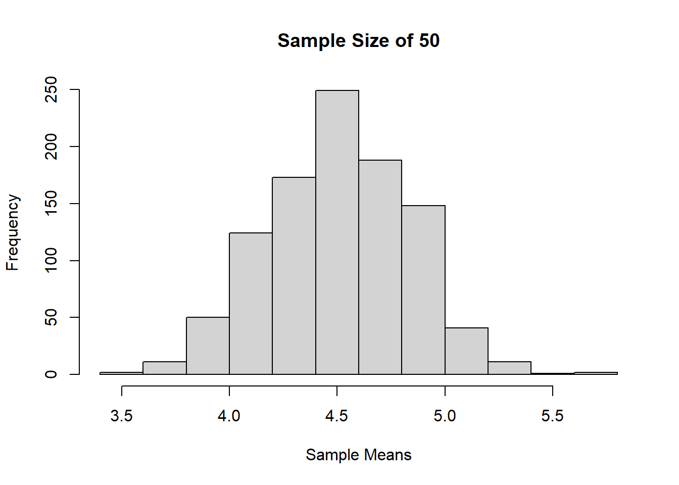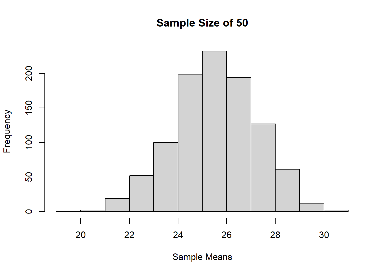Jika dilihat berdasarkan histogram dari ketiga sampling tadi, bisa terlihat bahwa semakin besar ukuran sampelnya, maka distribusi sample mean akan semakin mendekati distribusi normal