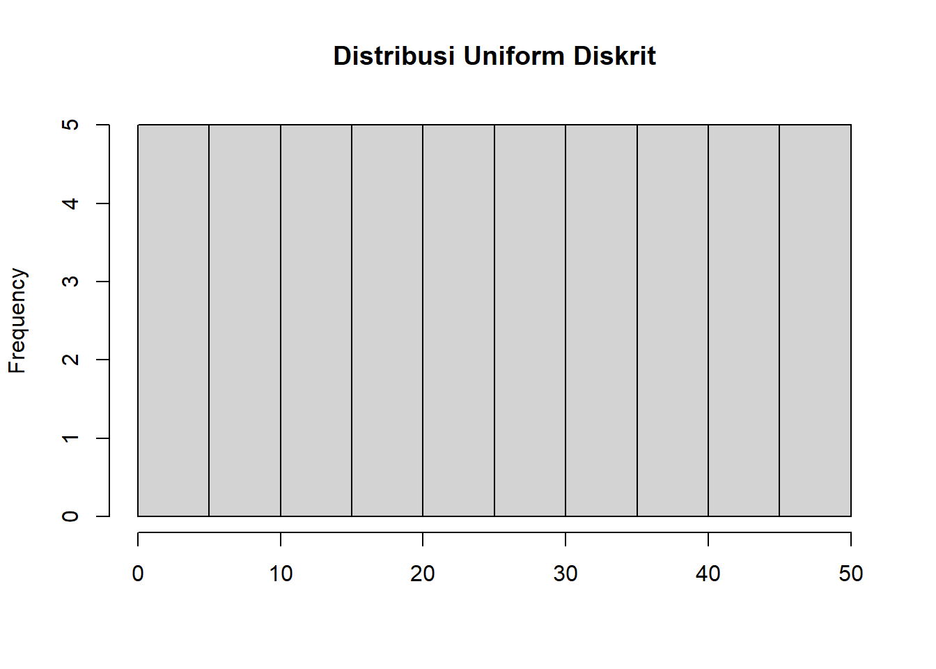 Mari kita coba untuk populasi yang berdistribusi diskrit berhingga. Distribusi tersebut bisa kita buat sendiri, misalnya sebagai berikut: