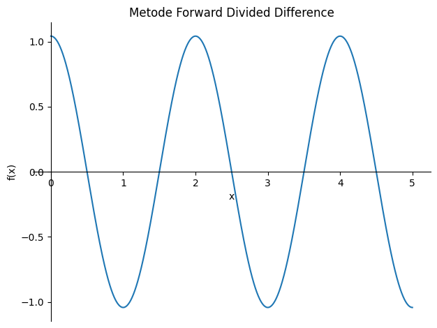 - [30] Gunakan Metode Divided Difference untuk menebak fungsi polinomial yang cocok dengan titik-titik yang telah dihasilkan (bebas menggunakan forward maupun backward)!