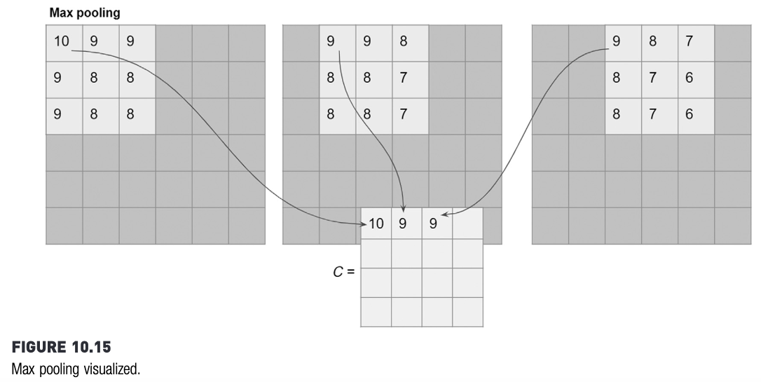 Daripada menghitung konvolusi, pooling hanya menghitung statistik sederhana saja. Biasanya menghitung maksimum, yang disebut max pooling.